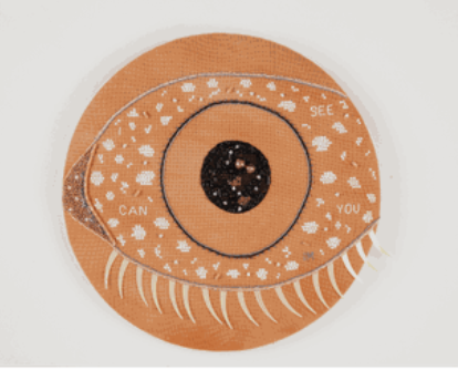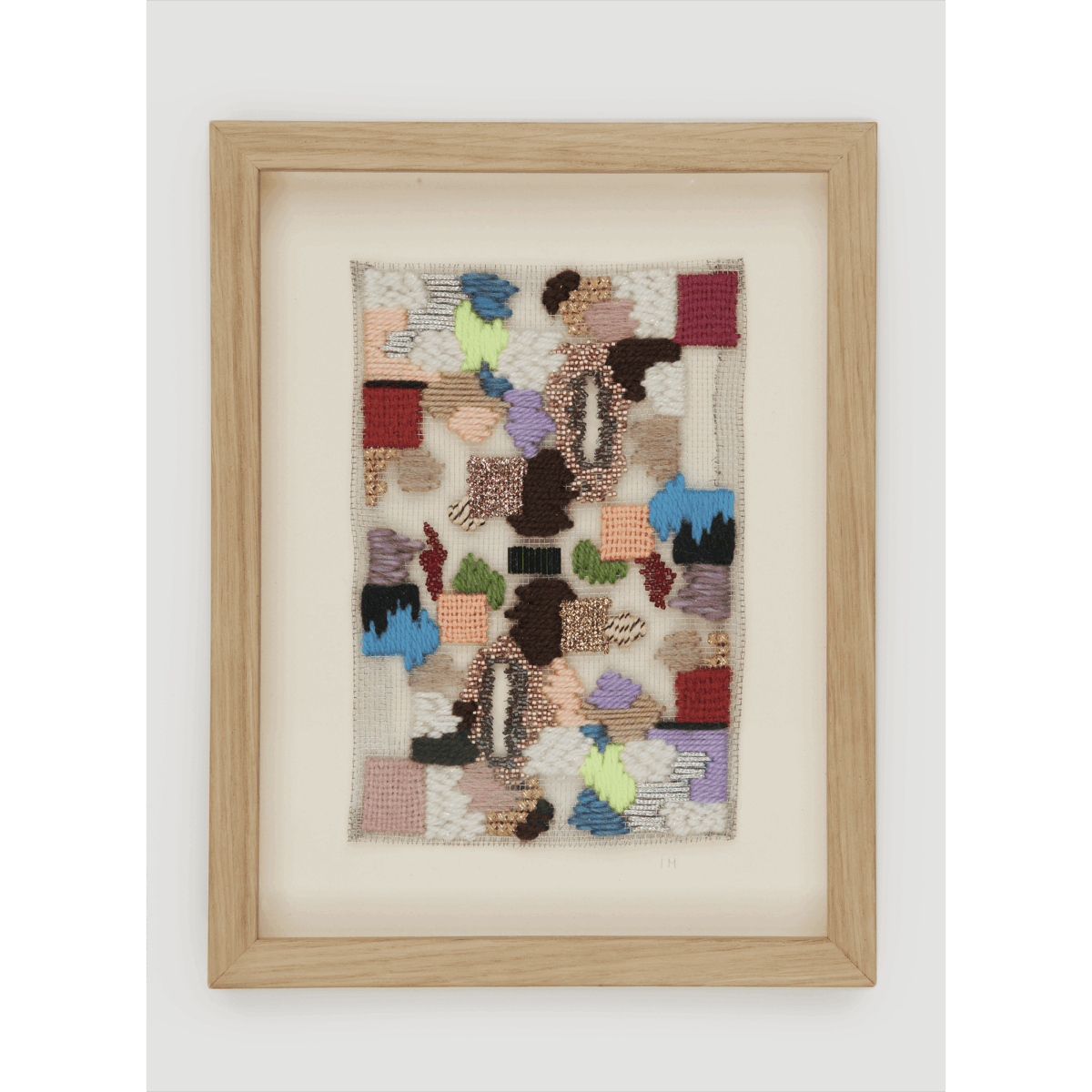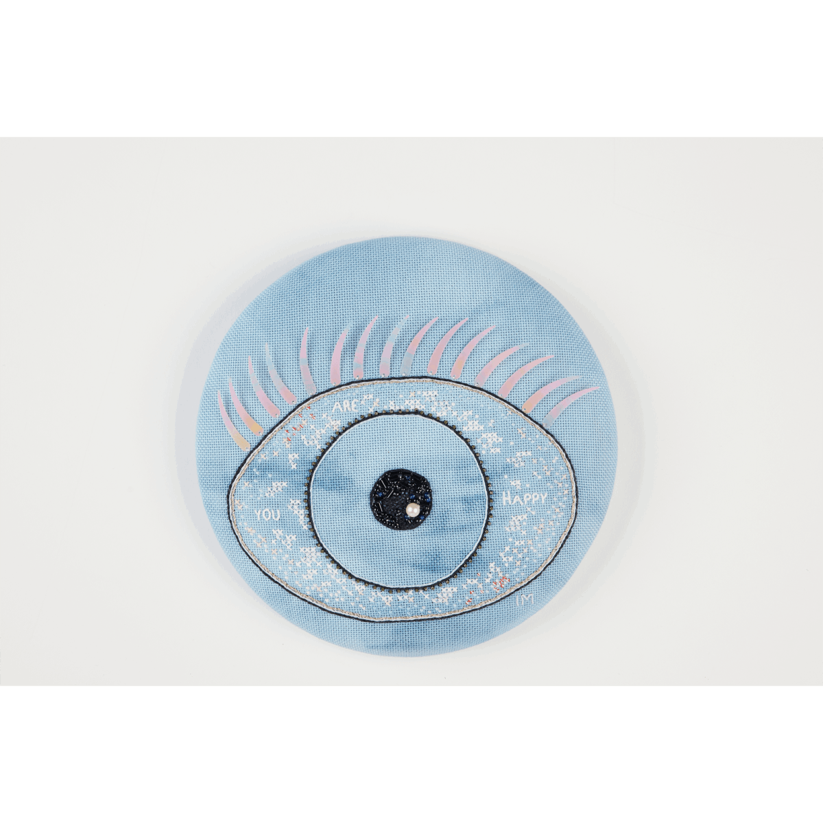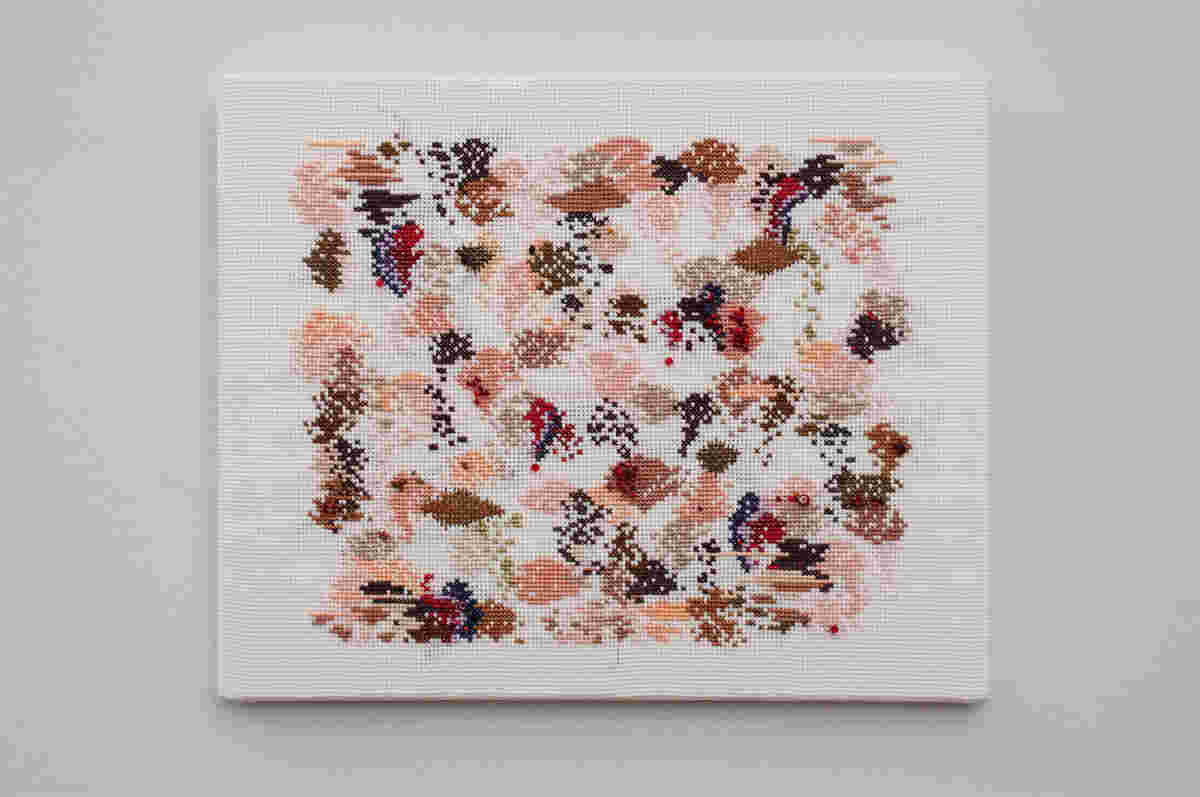 handmade embroidery on tie-dyed canvas, floss, sequins, beads